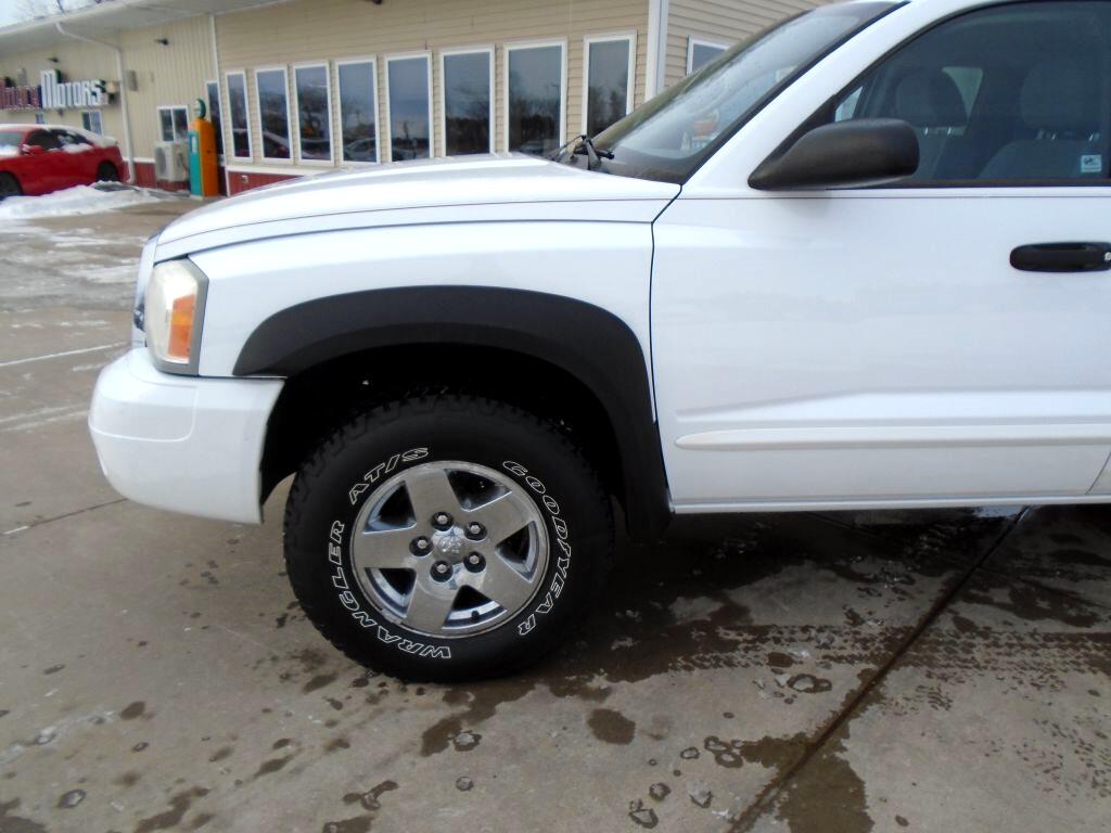 Our 2005 Dodge Dakota SLT Club Cab 4X2 presented in White is ready for your to-do list! Powered by a 3.7 Liter V6 offering 210hp paired with a 4 Speed Automatic transmission for easy passing power. This Rear Wheel Drive team gets the job done with ease and scores nearly 22mpg on the road! Take a look around our Dakota and notice the chrome grille, running boards, fog lamps, a color-matched bed topper, and bed liner to help you stand out! Once inside our SLT, you can enjoy comfortable cloth seating, with power accessories and a driver's seat. Turn up the AM/FM/CD audio and set out for your day in style and appreciate the easy-to-read gauges designed to help you stay focused. This Dodge Dakota has your safety covered as well by offering ABS, airbags, and more. Dodge remains a top choice for people looking for an all-around functional truck. Come see this Dakota SLT in person today! Print this page and call us Now...We Know You Will Enjoy Your Test Drive Towards Ownership! 0