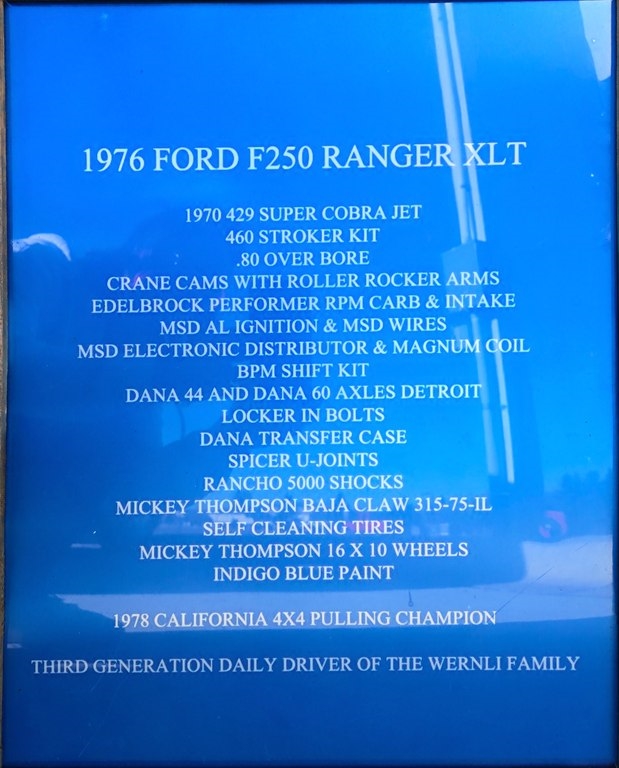 1970 429 SUPER COBRA JET 460 STROKER KIT .80 OVER BORE CRANE CAMS WITH ROLLER ROCKER ARMS EDELBROCK PERFORMANCE RPM CARB & INTAKE MSD AL IGNITION & MSD WIRES MSD ELECTRONIC DISTRIBUTOR & MAGNUM COIL BPM SHIFT KIT DANA 44 AND DANA 60 AXLES DETROIT LOCKER IN BOLTS DANA TRANSFER CASE SPICER U-JOINTS RANCHO 5000 SHOCKS MICKEY THOMPSON BAJA CLAW 615-75-IL SELF CLEANING TIRES MICKEY THOMPSON 16 X 10 WHEELS INDIGO BLUE PAINT RUNS GOOD. EXCELLENT CONDITION. NEEDS NEW OWNER