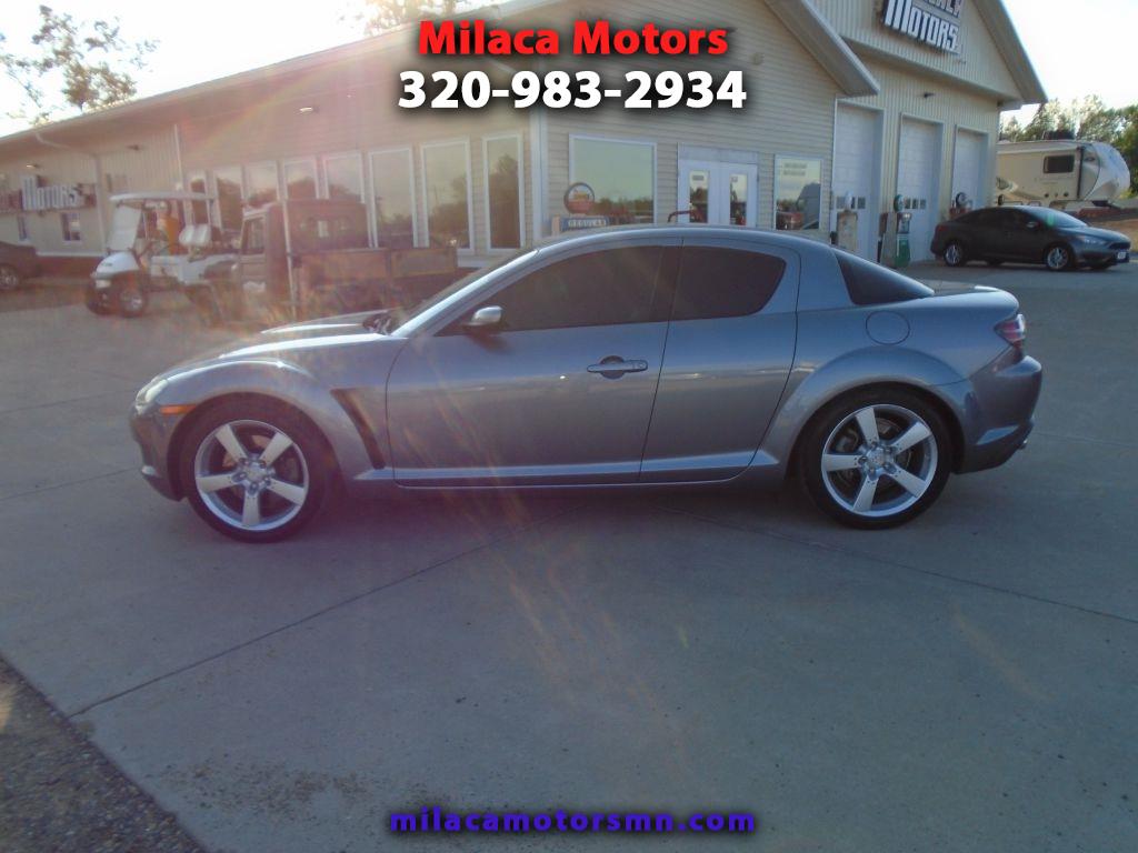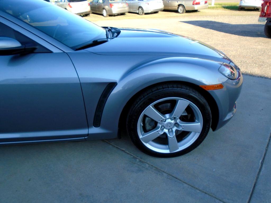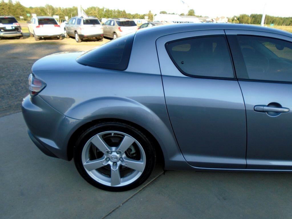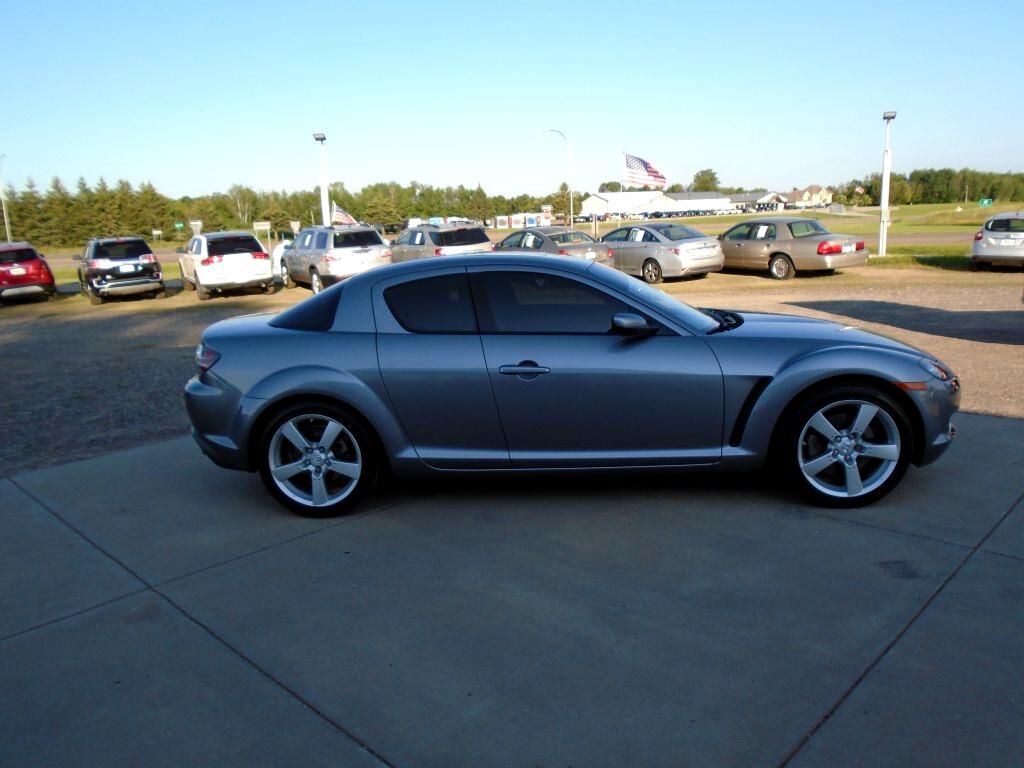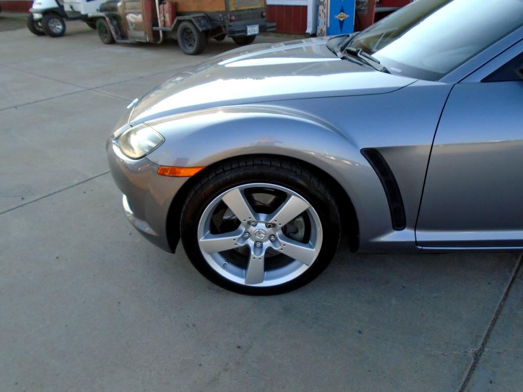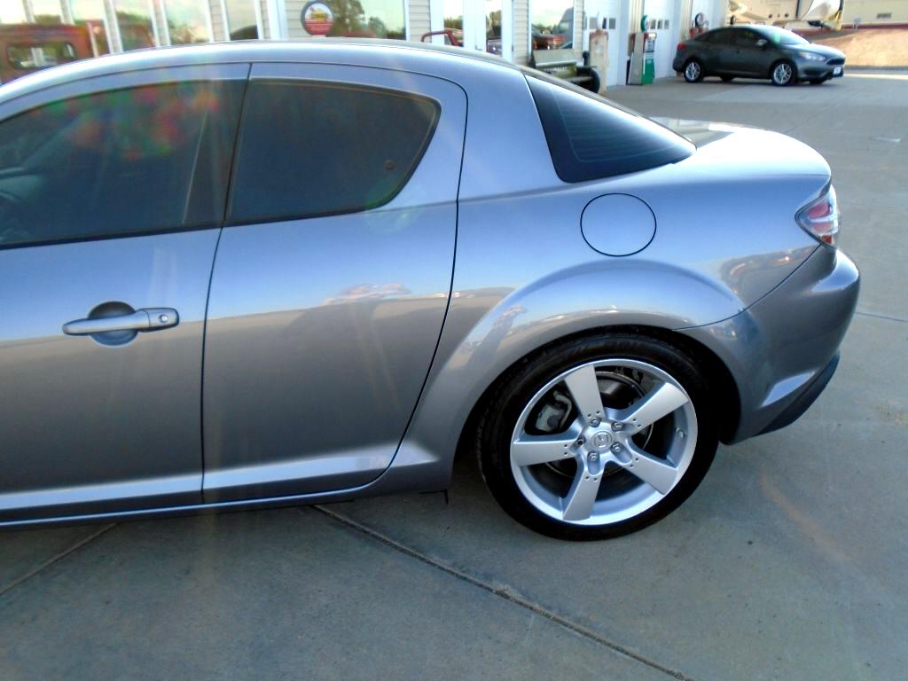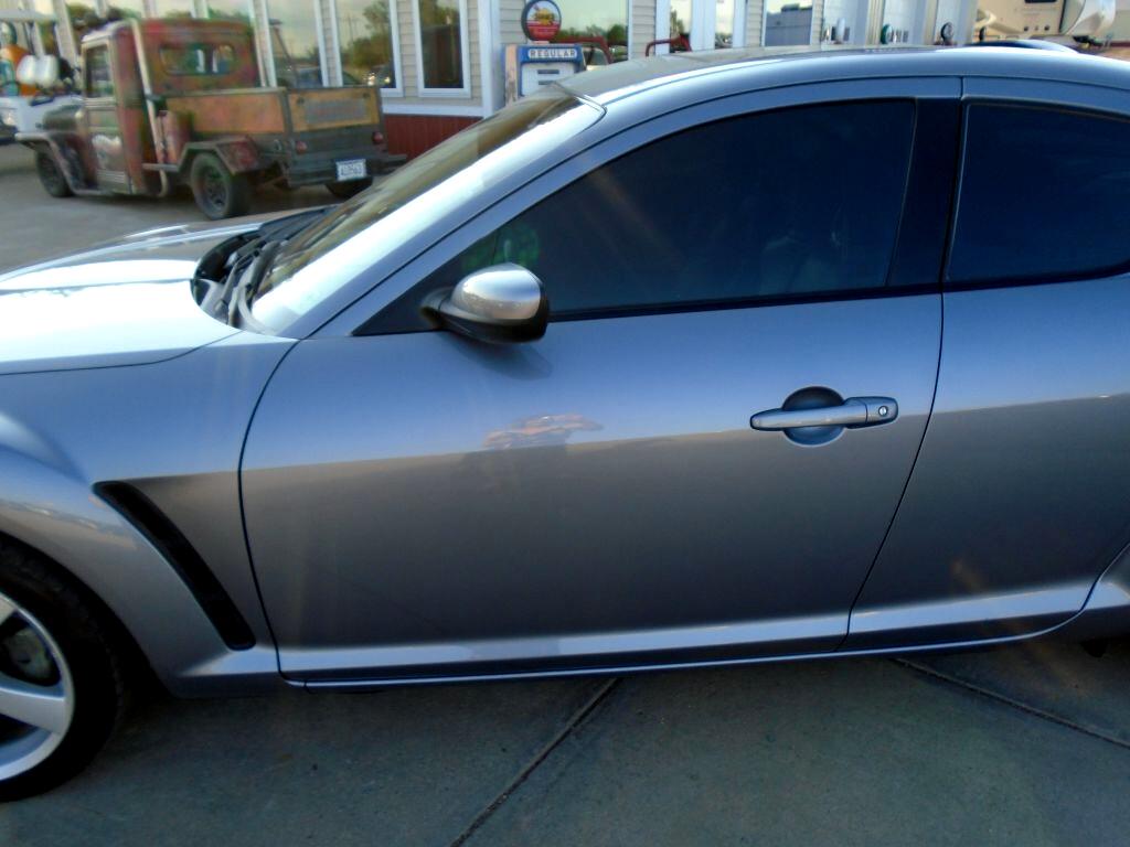 Rekindle your love for driving with our 2004 Mazda RX-8 Coupe showcased in Sunlight Silver Metallic. Powered by Mazda's unique 1.3 Liter Rotary engine generating 197hp that's paired with a 4 Speed Automatic transmission. No other manufacturer has anything like this Rear Wheel Drive machine that is a dream to drive. This RX-8 is a vision with its subtle curves, air-dam front end and trunk spoiler. As you examine our pictures, notice how this RX-8 is a coupe with four doors. The two rear doors are rear-hinged, allowing easy access to the back seat for your friends with no center-post to squeeze around. But don't let the four doors fool you. This car is sporty from bumper to bumper. Also watch for how our Mazda is loaded with fun power accessories, a huge sunroof, heated leather seats, and a great sound system with satellite radio capability. Enjoy peace of mind behind the wheel of this RX-8 as Mazda equipped this machine with airbags, ABS and other features for an extra measure of safety. This RX-8 is a rare opportunity in the market today. Wait no longer for real sports car fun with an unparalleled power plant. Save this Page and Call for Availability. We Know You Will Enjoy Your Test Drive Towards Ownership!