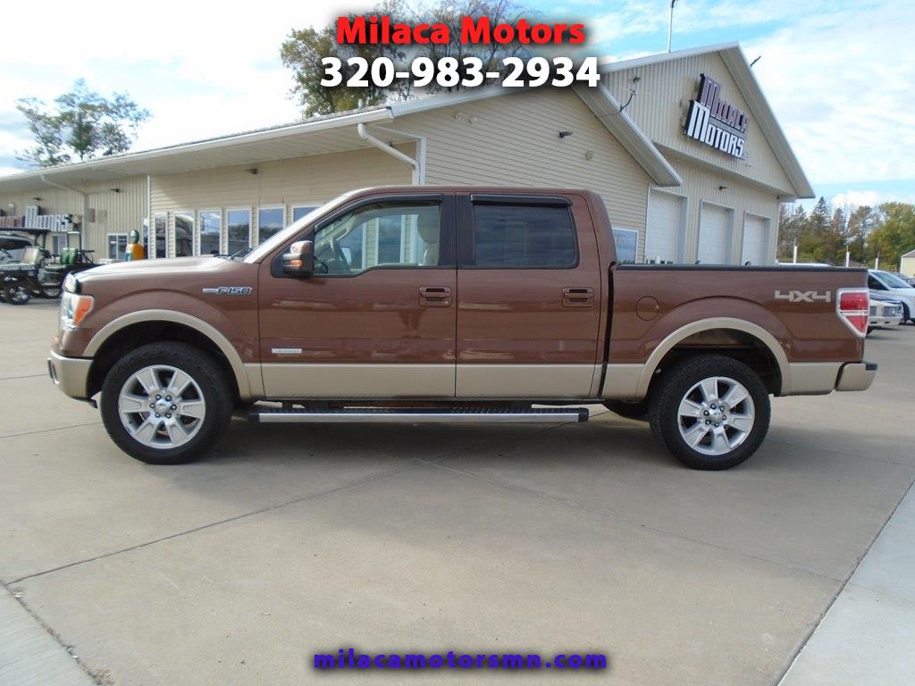 Our great-looking 2012 F-150 Lariat SuperCrew 4X4 with the Plus Package in an incredible Sterling Golden Bronze Metallic is ready for your life! Powered by a Twin TurboCharged 3.5 Liter V6 that supplies 365hp connected to a tough 6 Speed Automatic transmission with Ford's Tow/Haul mode. Our Four Wheel Drive truck offers nearly 22mpg on the highway and an aggressive ride thanks to great-looking running boards, sunroof, wheel lip moldings, tow hooks, fog lights, and 18-inch wheels. Inside, the Lariat cabin is top-notch, featuring the Plus Pack's heated and cooled front leather bucket seats with console, remote start, universal garage door opener, MyTouch Audio with CD, MyTouch, 4.2-inch LCD touchscreen, dual climate control, MyKey, power sliding rear window, and everything you need, including memory seating and pedals. This Ford leads the charge with onboard safety features, including multiple airbags, thorax airbags, advanced traction control with roll stability control, a reverse sensing system, a backup camera, and even shift-on-the-fly capability, making it the top in its class. So stop dreaming and start driving our F-150 Lariat. Save this Page and Call for Availability. We Know You Will Enjoy Your Test Drive Toward Ownership!