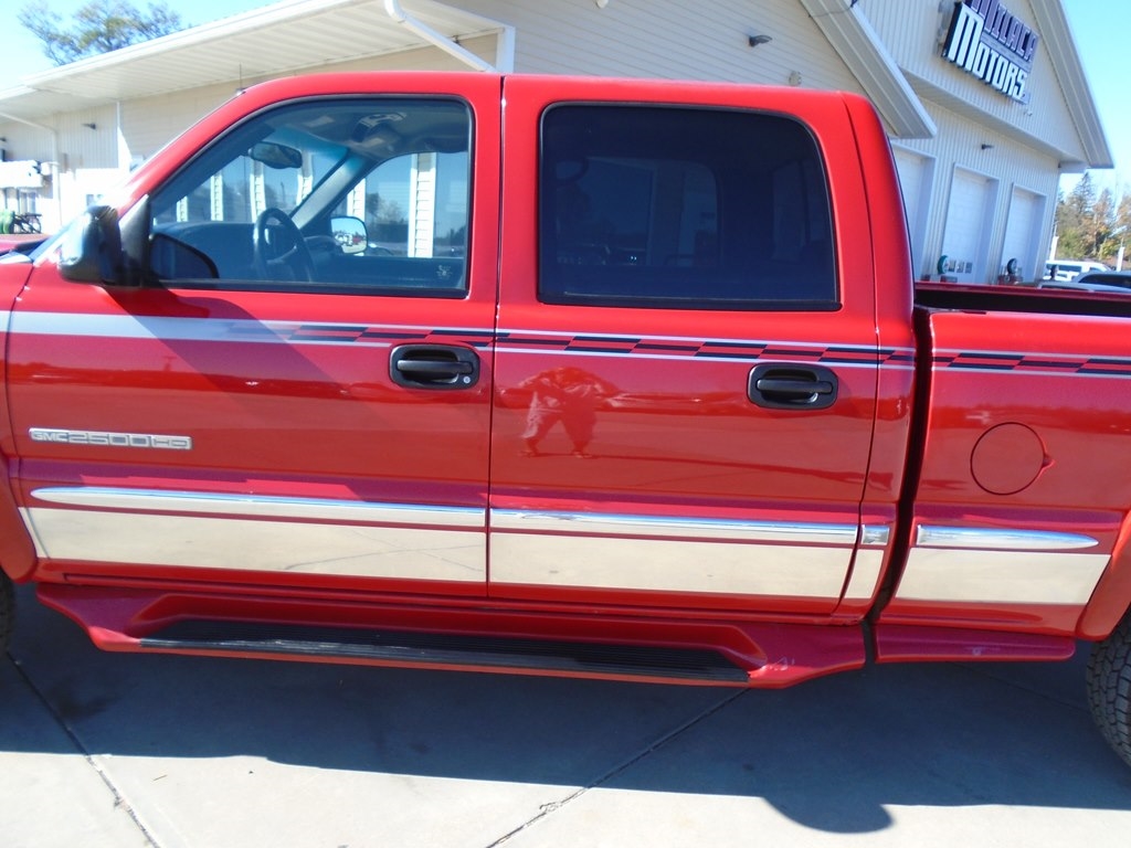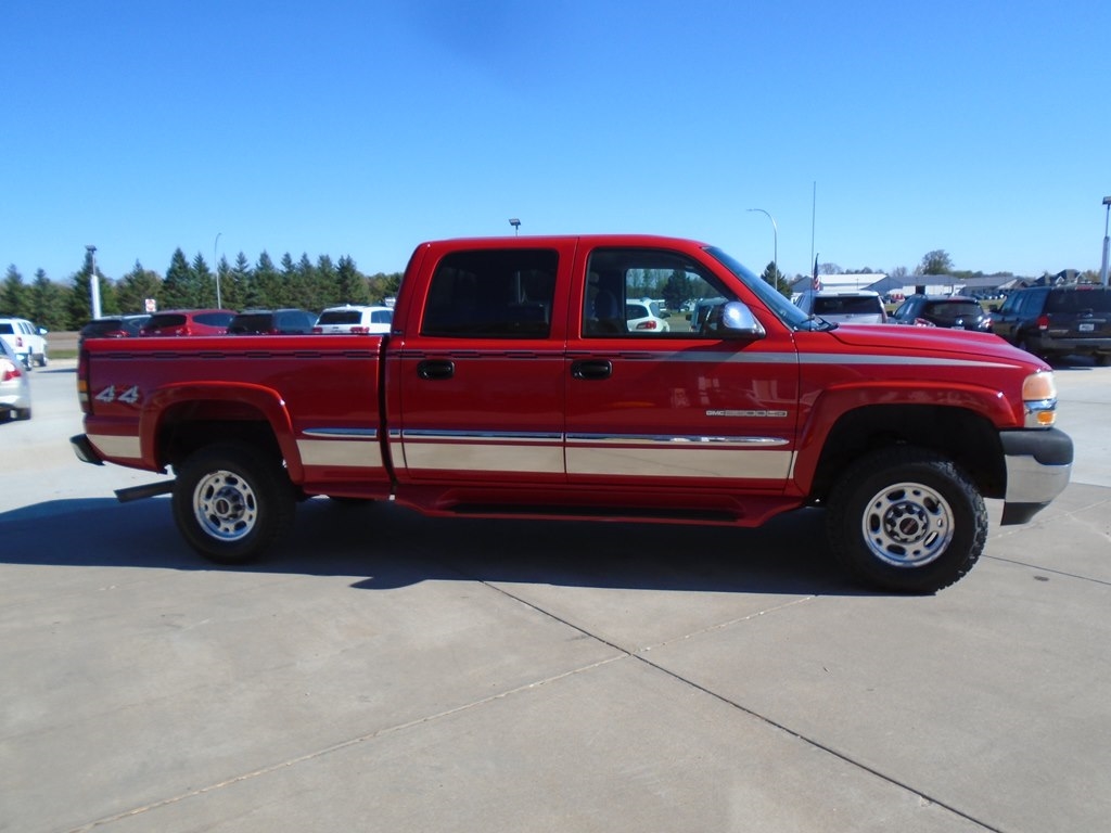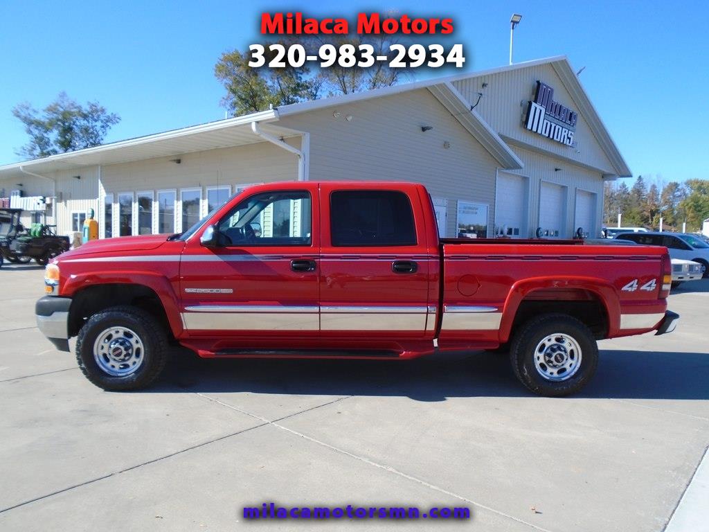 Meet our 2002 GMC Sierra 2500HD SLE Crew Cab 4X4 presented in Victory Red. Powered by a 6.0 Liter V8 generating 300hp while connected to a Automatic transmission. This Four Wheel Drive Sierra rewards you with nearly 17mpg on the highway while showing off great-looking wheels, chrome accents, running boards, and a protective bed liner. Inside our SLE, cloth seating, a nice sound system with AM/FM stereo, a CD player, auxiliary audio input, and power accessories provide a comfortable ride. Straightforward technology, easy to read gauges, and lots of comfortable passenger space make this truck an absolute pleasure. Safety features for the GMC Sierra included airbags, daytime running lights, and more to keep you and your passengers secure. This Sierra 2500HD SLE is waiting for you! Save this Page and Call for Availability. We Know You Will Enjoy Your Test Drive Towards Ownership!