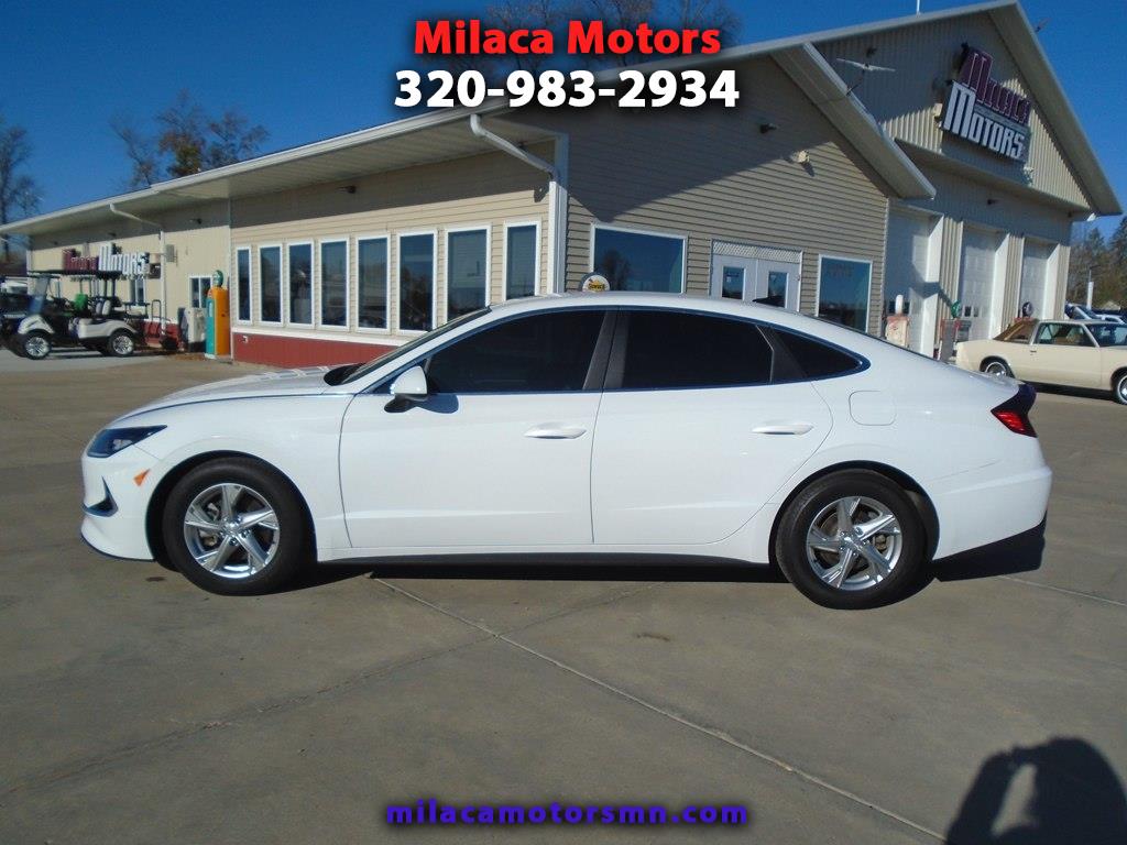 Striking from every angle, our 2021 Hyundai Sonata SE Sedan blends bold design with dynamic efficiency in eye-catching C style! Powered by a 2.5 Liter 4 Cylinder that generates 191hp connected to an 8 Speed Shiftronic Automatic transmission for impressive passing capability. Equipped with a multi-mode performance system, this Front Wheel Drive sedan also has responsive handling and returns nearly 38mpg on the highway. Our Sonata helps seal the deal with a sporty stance, LED lighting, dramatic grille, chrome accents, and alloy wheels. Inside our SE cabin, you can enjoy impressive head and legroom amenities, including comfortable cloth seats, a folding back row, a multifunction steering wheel, dual-zone automatic climate control, and a high-tech infotainment system. It keeps you connected to your world with an 8-inch touchscreen, voice command, Android Autor, Apple CarPlayr, Bluetoothr, and a six-speaker sound system. In addition to providing efficiency and style, Hyundai meets your needs with intelligent driver-assistance systems like adaptive cruise control, automatic braking, lane-keeping assistance, a driver attention monitor, and more. Putting yourself in the driver's seat of this Sonata SE sedan could be the smartest choice you'll make this year! Save this Page and Call for Availability. We Know You Will Enjoy Your Test Drive Toward Ownership!