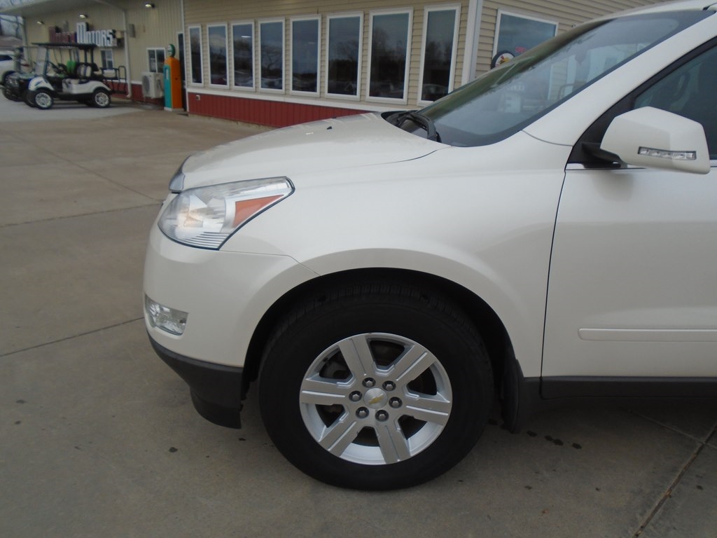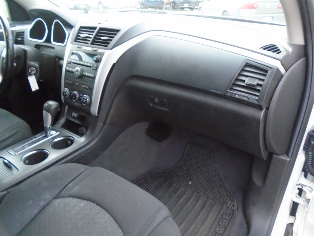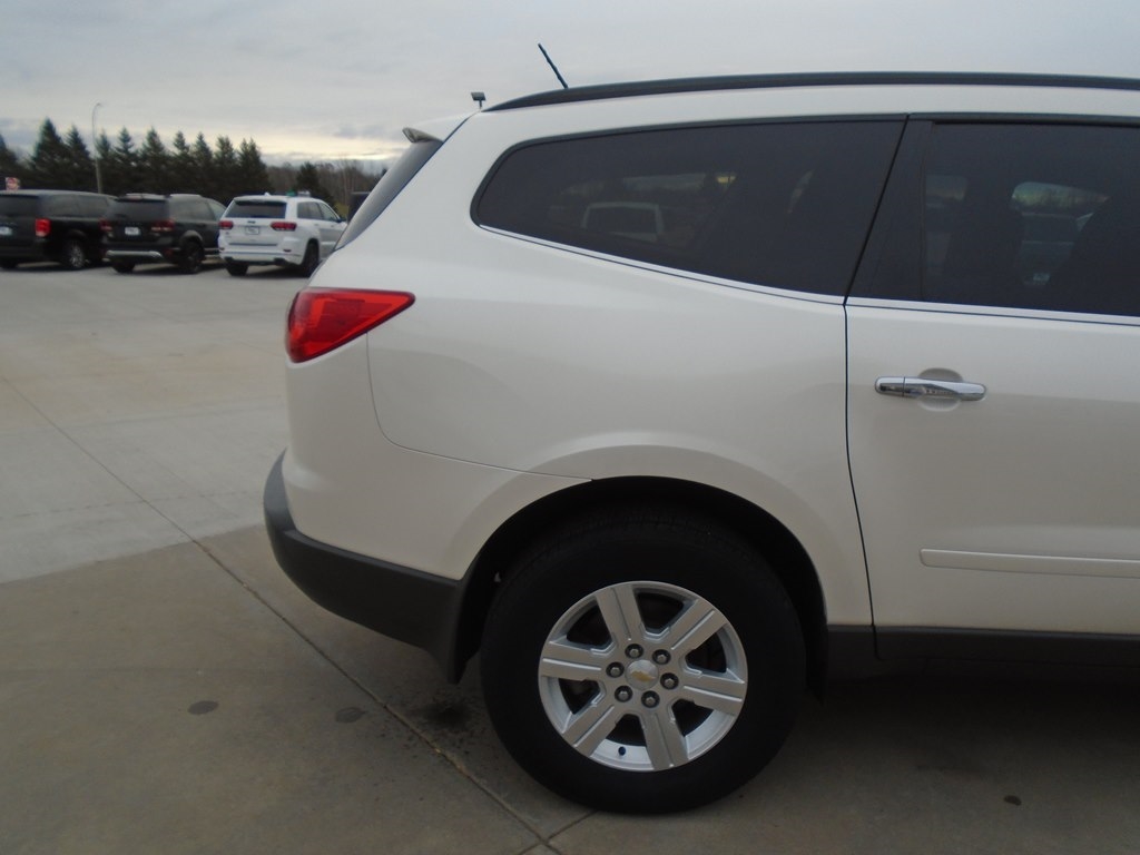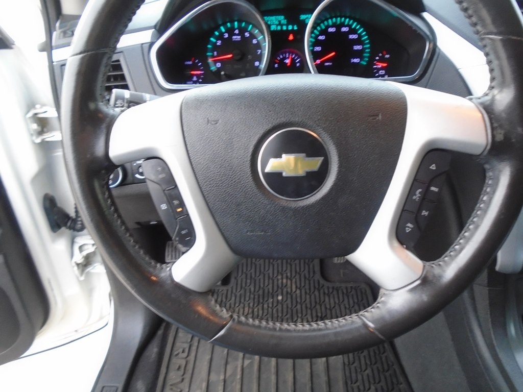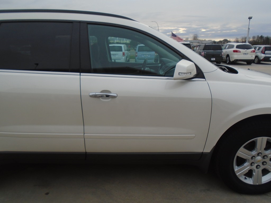 Our 2012 Chevrolet Traverse 1LT AWD in White Diamond Tricoat is winning rave reviews from drivers just like you! Powered by a 3.6 Liter V6 that offers 284hp connected to a 6 Speed Automatic transmission. Our All Wheel Drive Traverse scores nearly 24mpg and offers a first-class ride. Take a moment to admire the classic elegance of our Traverse 1LT. Open the door to see that our 1LT seats up to 8 comfortably and has the most cargo space in its class, plus wide opening doors and a family-friendly smart slide second-row seat plus ample technology, such as OnStar, SiriusXM, Radio Data System, auxiliary jack, and 6-speaker audio system. As seen in our pictures, the 1LT steps up in comfort and style, adding rear parking assist, 8-way power driver seat, and a leather-wrapped steering wheel. Chevrolet offers abundant safety features such as StabiliTrak, ABS, 6 airbags, and a high-strength steel cage making Traverse one of the safest family vehicles available. Give your family the security, performance, and comfort that only come from owning the Traverse. Save this Page and Call for Availability. We Know You Will Enjoy Your Test Drive Towards Ownership!