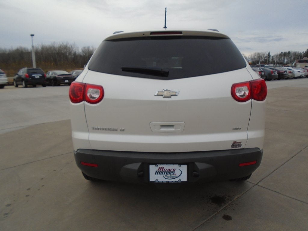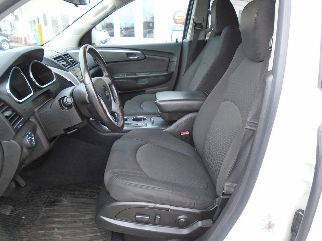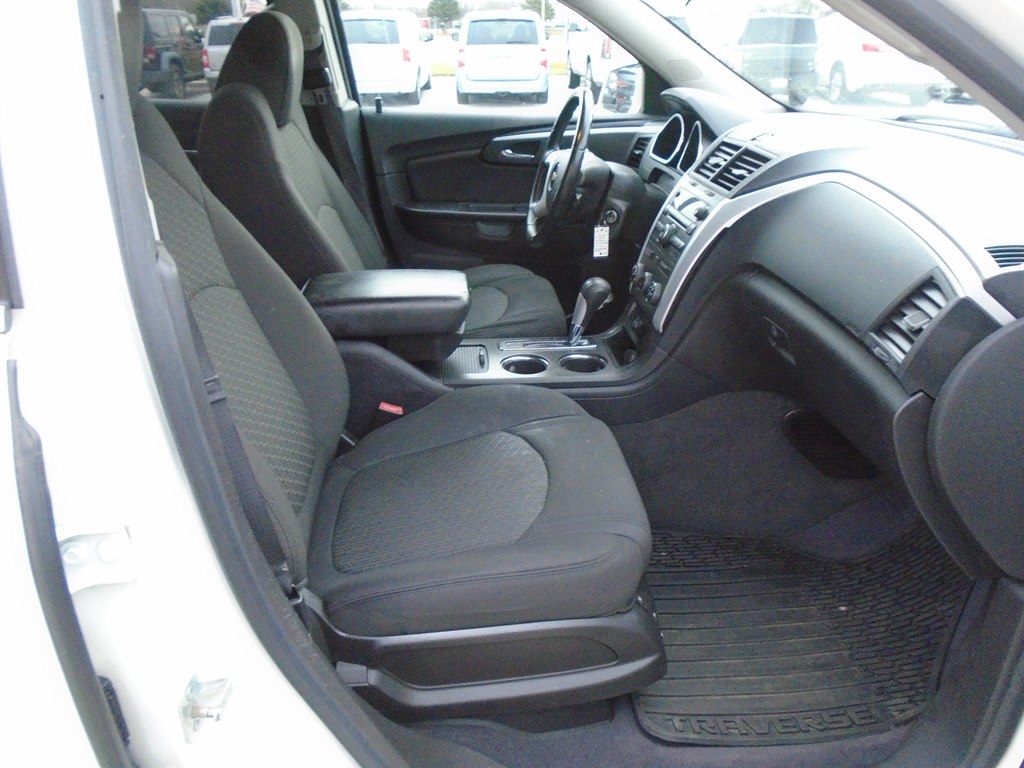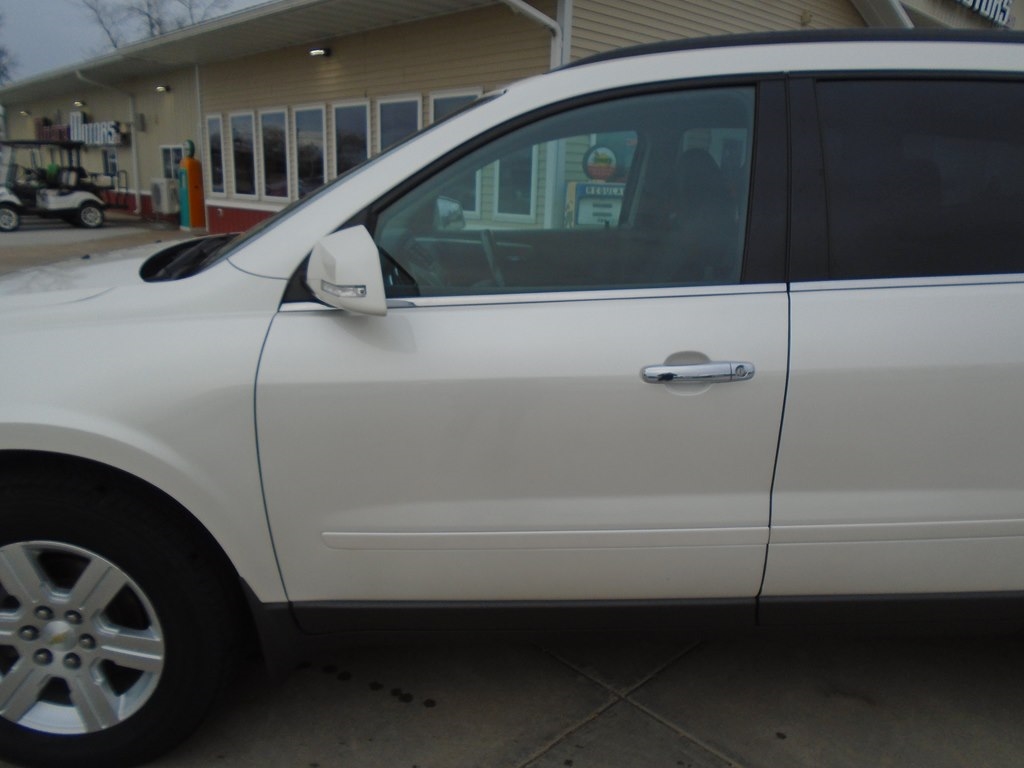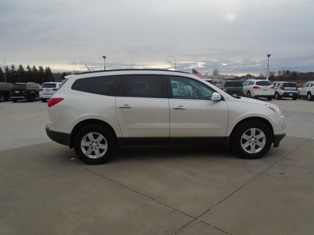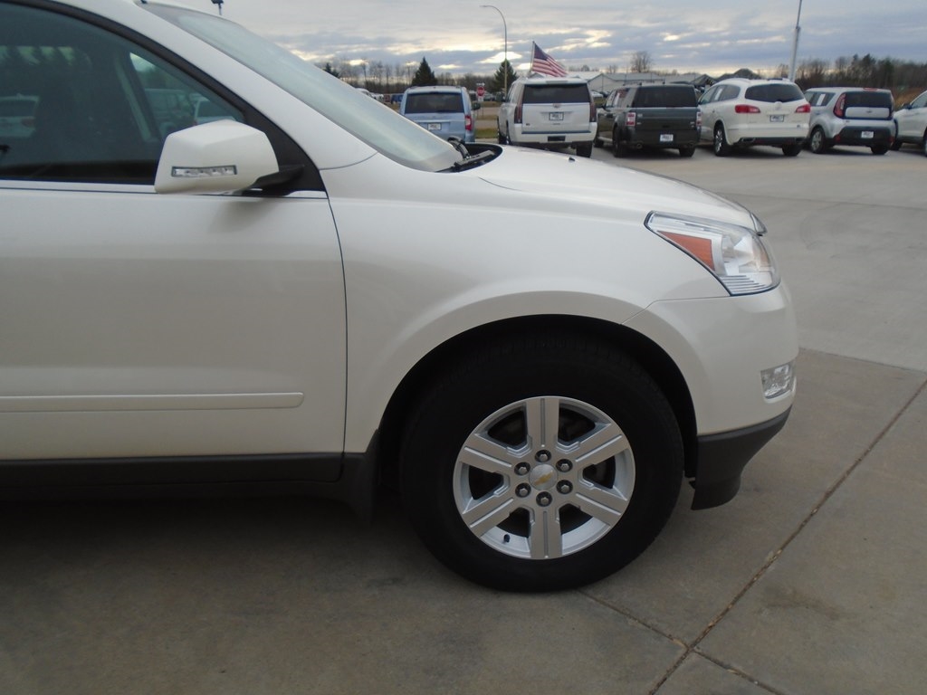 Our 2012 Chevrolet Traverse 1LT AWD in White Diamond Tricoat is winning rave reviews from drivers just like you! Powered by a 3.6 Liter V6 that offers 284hp connected to a 6 Speed Automatic transmission. Our All Wheel Drive Traverse scores nearly 24mpg and offers a first-class ride. Take a moment to admire the classic elegance of our Traverse 1LT. Open the door to see that our 1LT seats up to 8 comfortably and has the most cargo space in its class, plus wide opening doors and a family-friendly smart slide second-row seat plus ample technology, such as OnStar, SiriusXM, Radio Data System, auxiliary jack, and 6-speaker audio system. As seen in our pictures, the 1LT steps up in comfort and style, adding rear parking assist, 8-way power driver seat, and a leather-wrapped steering wheel. Chevrolet offers abundant safety features such as StabiliTrak, ABS, 6 airbags, and a high-strength steel cage making Traverse one of the safest family vehicles available. Give your family the security, performance, and comfort that only come from owning the Traverse. Save this Page and Call for Availability. We Know You Will Enjoy Your Test Drive Towards Ownership!