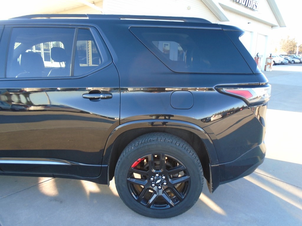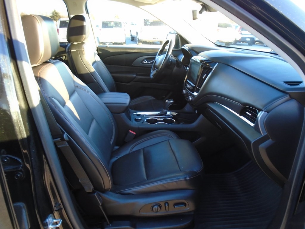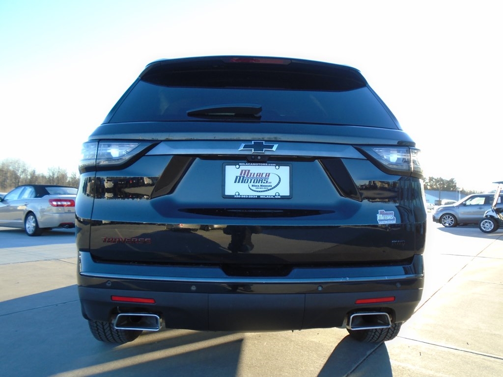 Our Black Meet Kettle 2018 Chevrolet Traverse Premier AWD offers a premium driving experience for the whole family! Powered by a 3.6 Liter V6 delivering 310hp connected to an advanced 9 Speed Automatic transmission for easy passing. Whether taking the kids to school, commuting to work, or towing that toy on the weekends, this All Wheel Drive SUV is at your service, offering nearly 27mpg on the highway. Look over our adventure-friendly Traverse, and you'll see it's a stylish ride with stunning LED D-Optic headlights, heated power mirrors, 20-inch alloy wheels, rectangular-tipped dual exhaust outlets, and a helpful hands-free tailgate. Move to the inside of our Premier trim, and you'll be greeted by leather heated/ventilated front seats and heated second-row captain's chairs, leather heated steering on a power column, and tri-zone automatic climate control. Advanced technologies such as an 8-inch touchscreen with full-color navigation, wireless charging, Android Autor/Apple CarPlayr, WiFi compatibility, Bluetoothr, and a Bose audio system are also on board, with plenty of room left for cargo! Safety for you and your passengers is imperative. Chevrolet protects your travels with a backup camera, lane-keeping assistance, a blind-spot monitor, rear cross-traffic alert, and rear parking sensors. Our Traverse Premier has style, space, and technology to spare! Save this Page and Call for Availability. We Know You Will Enjoy Your Test Drive Towards Ownership!