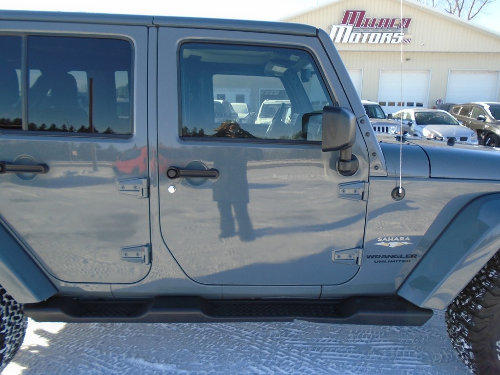 Ruggedly handsome in Anvil Clearcoat, our 2015 Jeep Wrangler Unlimited Sahara 4X4 is ready to get dirty! Powered by a 3.6 Liter V6 that produces 285hp tethered to a 5 Speed Automatic transmission. This Four Wheel Drive SUV shows off nearly 21mpg on the road and comes with rock-solid Dana axles to help you maintain civility or carve your own path where ever you see fit. The Sahara looks great with 18-inch wheels, fender flares, and tubular side steps for easier access. With Sahara, if you get the urge to take an open-air cruise, remove the top, put on some shades, crank up the awesome sound system, and hit the road! Enjoy easy-to-read gauges, cloth seats, and a look that commands attention. With Jeep, a strong safety cage surrounds you, multistage airbags protect you, and Hill-start and stability control help you along the way with all of the legendary rock-climbing abilities with a dose of comfort. This Wrangler Unlimited Sahara is an impressive ride and ready for you! Save this Page and Call for Availability. We Know You Will Enjoy Your Test Drive Towards Ownership!