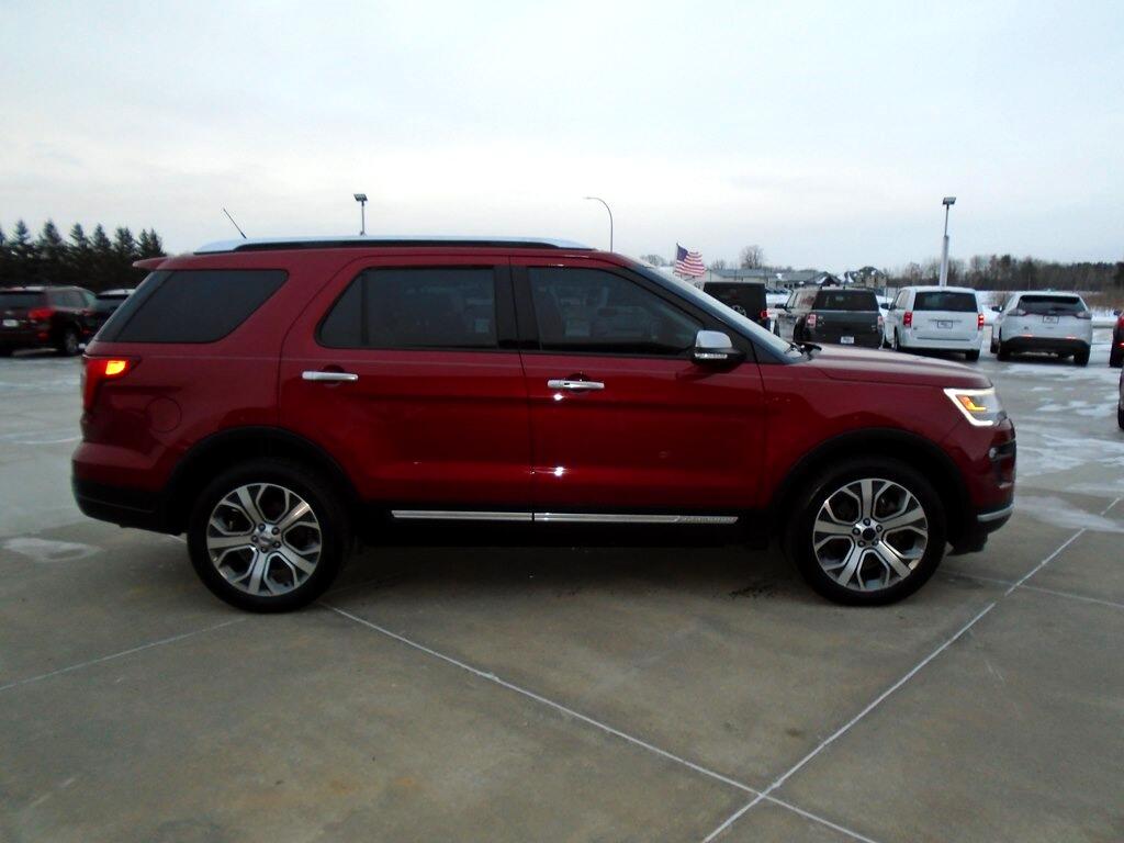 Our bold 2019 Ford Explorer Platinum 4WD supplies an exceptional mix of confidence and comfort in Ruby Red! Powered by a Twin-TurboCharged 3.5 Liter EcoBoost V6 offering 365hp connected to a 6 Speed SelectShift Automatic transmission for advanced capability. Our Four Wheel Drive SUV also delivers responsive steering and smooth handling that will have you looking for reasons to get out and find adventure, and it returns nearly 22mpg on the highway. Our Explorer grabs attention, too, with an upscale design enhanced by LED lighting, a power sunroof, alloy wheels, and a hands-free liftgate. A wealth of amenities is on full display in our Platinum cabin with leather heated/ventilated massage-function front seats, a heated second row, a leather-and-wood heated steering wheel, dual-zone automatic climate control, and fantastic Ford technologies. Take command with a digital instrument panel, an 8-inch touchscreen, full-color navigation, Android Autor/Apple CarPlayr, WiFi compatibility, and a Sony audio system that immerses you in high-fidelity sound. Ford furnishes plenty of safety features as well, with a backup camera, blind-spot monitor, automatic braking, adaptive cruise control, and even automatic parking assistance, so it's always easy to find your spot. Discover a better way to drive in our Explorer Platinum today! Save this Page and Call for Availability. We Know You Will Enjoy Your Test Drive Towards Ownership!